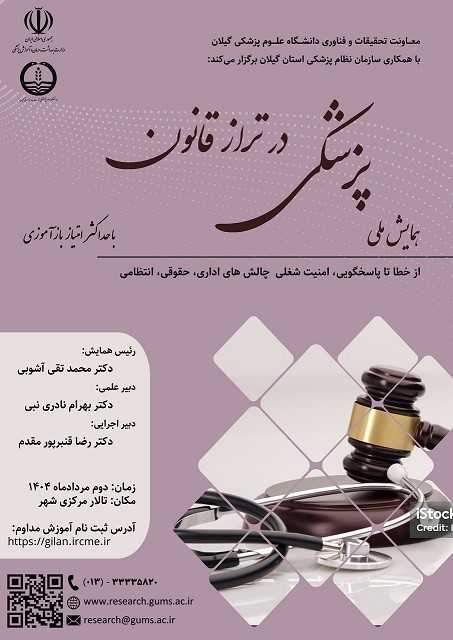 برگزاری برنامه علمی «پزشکی در تراز قانون: از خطا تا پاسخگویی،امنیت شغلی و چالش های اداری،حقوقی، انتظامی» در دانشگاه علوم پزشکی گیلان