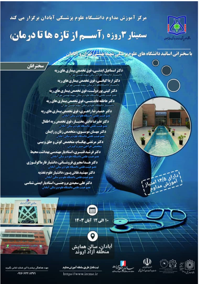 سمینار سه روزه آسم از تازه ها تا درمان 10 الی 12 آبان ماه توسط دانشگاه علوم پزشکی آبادان