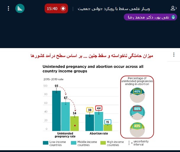 در این وبینار، مطالب جامعی در خصوص: اپیدمیولوژی سقط و وضع موجود آن، سقط قانونی و غیر قانونی، عوارض سقط غیر قانونی، سقط و عواقب اجتماعی ارائه شد.