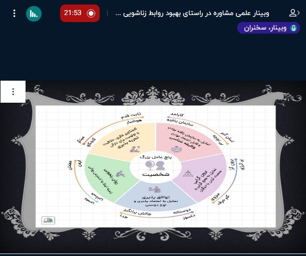در این وبینار، مطالب جامعی در خصوص: روابط زناشویی و عوامل مرتبط با آن، عملکرد جنسی و رفتار جنسی و اثر آن بر روابط زناشویی، مهارتهای مشاوره ای موثر بر ارتقای زندگی زناشویی ارائه شد.
